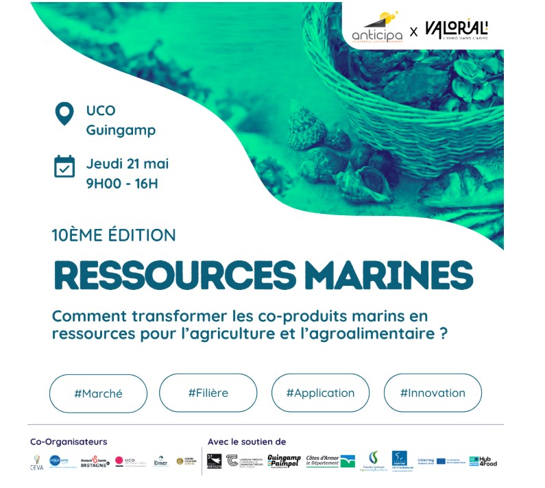 We are pleased to take part in the 10th edition of the Marine Resources Day, held on May 21, 2026, at UCO Bretagne Nord (Guingamp). This year’s event will focus on the transformation of marine co-products into valuable resources for agriculture and the agri-food sector. You will find us at the event with a dedicated stand, represented by our partner CEVA, who will be available to present the project and discuss our latest work on seaweed and marine biomass valorisation. We look forward to connecting with participants and sharing insights on innovative and sustainable solutions in the algae sector. Register now to join the event and meet us on-site : https://forms.fillout.com/t/3P1DxnA5pBus